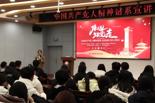 活动现场 张严以习近平总书记“伟大事业孕育伟大精神,伟大精神引领伟大事业”的重要论述为引,系统梳理了中国共产党人精神谱系的历史脉络与时代内涵。她从新民主主义革命时期的红船精神、井冈山精神、长征精神、延安精神、抗战精神,讲到社会主义革命和建设时期的抗美援朝精神、雷锋精神、焦裕禄精神、大庆精神、“两弹一星”精神;从改革开放和社会主义现代化建设新时期的特区精神、抗洪精神、载人航天精神,讲到中国特色社会主义新时代的脱贫攻坚精神、抗疫精神、科学家精神等。张严指出,这些精神一脉相承、与时俱进,共同构筑起中国共产党人的“精神脊梁”,是党和国家宝贵的精神财富。 针对青年学员如何传承践行中国共产党人精神谱系,张严分享了四点践行指引:一要以“攻坚精神”攻克学业难关,做求真务实的学习者;二要以“担当精神”参与社会实践,做不负人民的奉献者;三要以“创新精神”突破思维局限,做敢为人先的开拓者;四要以“自律精神”涵养品德修为,做严于律己的践行者。 本次宣讲史料详实、案例生动,学员纷纷表示,通过本次学习,对中国共产党人的精神世界有了更深刻的体悟,将进一步坚定入党初心,锤炼党性修养,努力成为可堪大用、能担重任的时代新人,让红色基因代代相传,让精神之火生生不息。