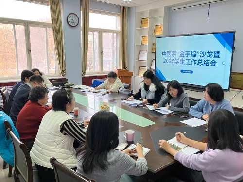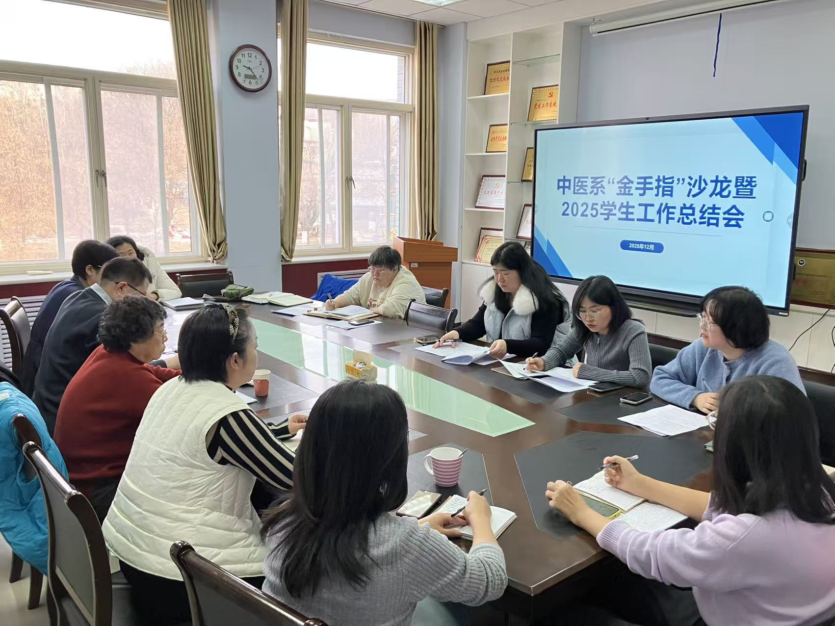 2025年12月19日,中医系在科研楼404会议室举办“金手指”沙龙暨2025年学生工作总结会。会议特邀我校思想政治教育教授、原中医系资深辅导员韩素华老师到场指导。韩老师曾带领班级荣获“全国先进班集体”等国家级荣誉,育人经验丰富。中医系党政领导及各年级辅导员参会。