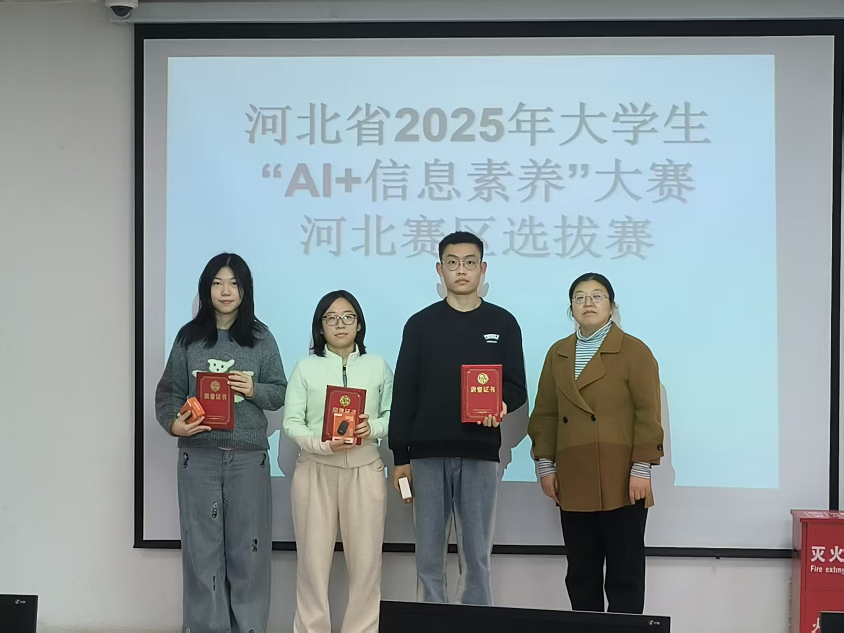 为获奖学生颁奖 12月18日下午,在图书馆五楼举行了2025年大学生“AI+信息素养”大赛河北赛区和校赛颁奖仪式。图书馆副馆长高雅佳为获奖同学颁奖并致以祝贺。她希望获奖同学珍惜荣誉、再接再厉,充分发挥示范引领作用,带动更多同学提升智能时代的核心竞争力。 获奖学生取得的优异成绩,既是对其自身努力的肯定,也是对图书馆开展信息检索课程教育的集中检验与成果体现。长期以来,图书馆坚持以“课程引领、实践赋能、赛事驱动“的一体化模式,系统推进信息素养教育:通过定期举办专题讲座,组织各类相关竞赛,积极指导与鼓励师生共同探索AI在医学教育教学中的创新应用。未来,图书馆将继续致力于信息素养教育模式的创新与实践路径的探索,为培养适应智能时代需求的高素质医学人才、构建高质量教育体系贡献力量。