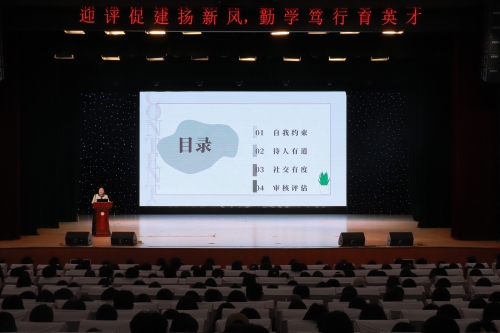 会议初始,朱炎杰以“迎评促建”“学风建设”两大板块为切入口,强调了本科教育教学评估的重要性及必要性,要求同学们以实际行动践行社会主义核心价值观,为培养德智体美劳全面发展的医疗卫生人才奠定坚实基础。单媛围绕大学礼仪教育,从五个方面对大学礼仪进行系统讲解,内容涵盖课堂、师生交往、校园生活、网络及评估期间专项礼仪等方面,要求同学们将各项要求融入日常并做到内化于心、外化于行。最后,教育教学评估宣讲员单钰茹、张悦涵为同学们讲解了本科教育教学评估内容,包含核心定义、开展原因、指导思想、基本原则及“十六字方针”五大方面,号召同学们积极响应会议要求,深刻理解本科教育教学评估的重要意义,并在日常学习生活中以实际行动积极配合,共同为学校的发展贡献力量。
