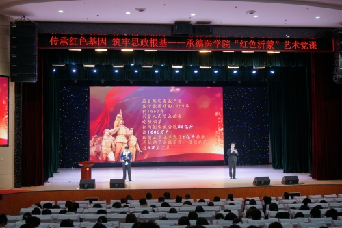 为弘扬践行沂蒙精神,厚植青年学子爱党爱国情怀,4月14日,中共临沂市委党校鲁南制药分校莅临我校开展《红色沂蒙》艺术党课宣讲活动。学校党委常委、副校长刘刚,鲁南制药集团张家口承德地区负责人杜已明、李世昌出席活动,我校师生代表1000余人齐聚现场,共同聆听了这场沉浸式、有温度、有力量的思政课。 宣讲现场,《红色沂蒙》艺术党课以党群心连心、拥军勇支前、日月换新天、时代谱新篇四大篇章为主线,通过歌曲、戏剧、朗诵、情景再现等方式重现沂蒙老区峥嵘岁月与奋斗历程,深刻诠释沂蒙精神的丰富内涵,让在场师生深受教育、倍感振奋。宣讲打破传统党课的说教模式,让红色历史“活起来”,革命精神“实起来”。现场师生沉浸其中,掌声一次次响起。大家表示,这不仅是一堂深刻的党性教育课,更是一场直击心灵的精神洗礼,从中真切感受到沂蒙精神作为党和国家宝贵精神财富的强大生命力。