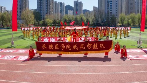 党政办公室主任袁婧主持开幕式 河北省大运会1500米女子铜牌获得者苗宛钰同学代表运动员宣誓;学校公共体育部成员代表裁判员宣誓。随后团体文艺项目表演闪亮登场,青春的律动瞬间燃遍全场。鼓阵列队,声震四方,威风锣鼓队槌起槌落,如雷霆乍惊,如战鼓催征;动静相生,刚柔并济,中医系代表队行云流水,太极八卦圆转如意,太极拳法绵绵不绝;活力四射,律动青春,基础医学院健美操队身姿矫健,用肢体书写热情,用节奏引爆全场;花球飞舞,笑靥绽放,护理系啦啦队踏歌而来,为赛场注入活力,为健儿点燃信心。各个表演团队都彰显了承医学子独特的青春风采和精神面貌。