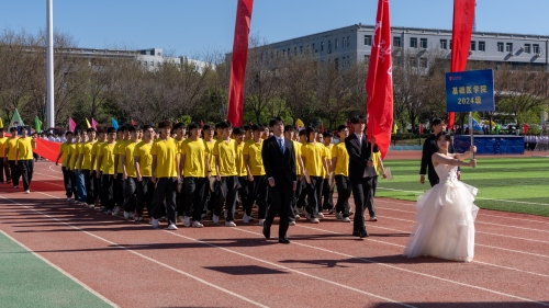 春风浩荡,青春逐梦。2026年4月29日,承德医学院第五十九届田径运动会开幕式在学校田径运动场隆重举行。学校党委副书记、校长李玉红,党委副书记张学良、翟玉建,副校长刘刚、郭玉成等出席开幕式。党政办公室主任袁婧主持开幕式。全体师生齐聚赛场,共赴这场凝聚力量、彰显朝气的体育盛会,以热血拼搏书写承医青春华章。